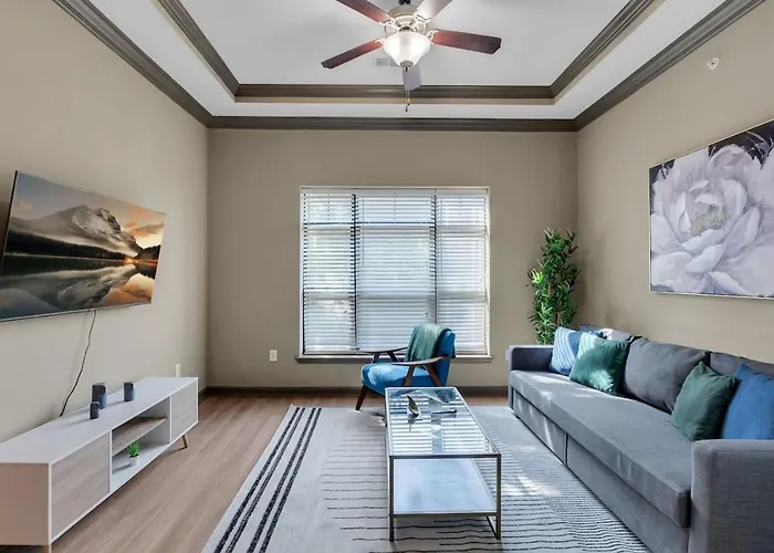 The spacious 1-bedroom Chic 2Br- Pool,Gym,Pkng,Near Bok Ctr&Arts Dstrct Apartment Tulsa is right in the centre of Tulsa, approximately a 5-minute walk from the Guthrie Green. Access to a private pool ensures a more relaxing stay.